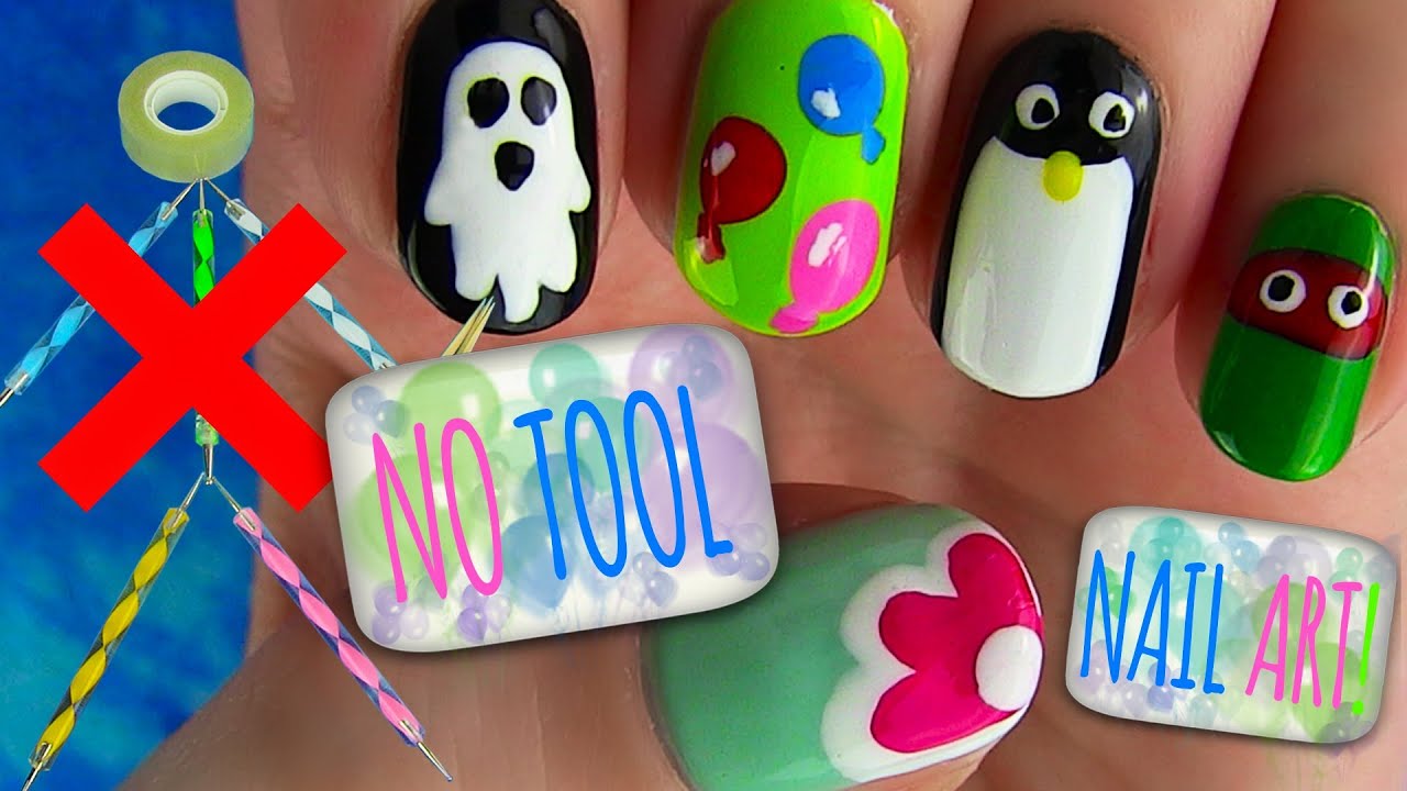 No Tool Nails Tutorial! 5 Nail Art Designs